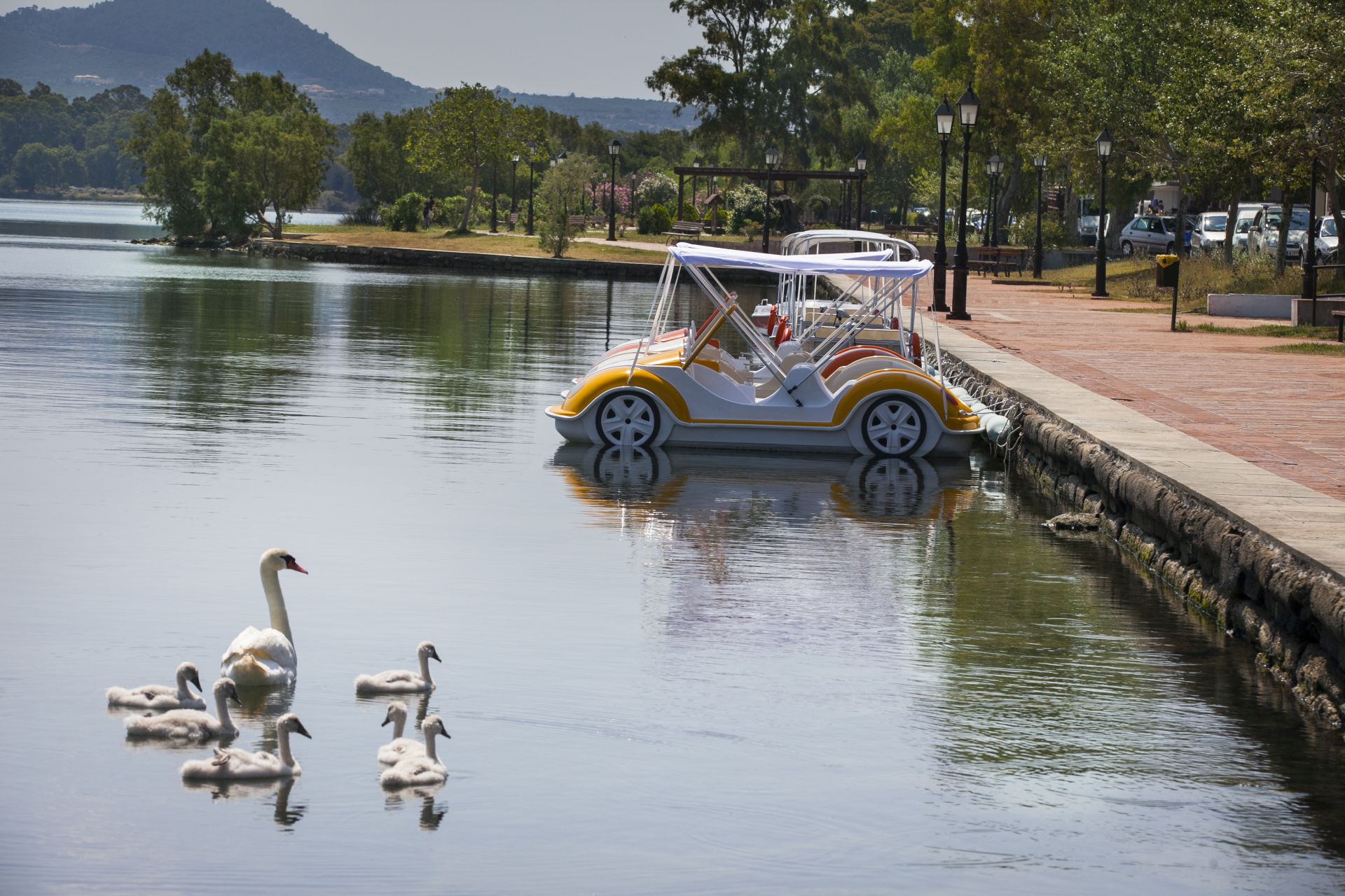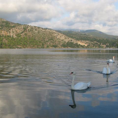 Koutavos, a significant wetland of Kefalonia, hosts many species of birds like swans, mallards, waterhens, gulls, but also many fish species.The most important swimmer of the lake is the sea turtle Caretta-caretta.