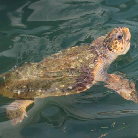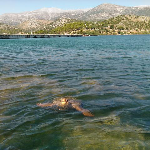 Wildlife Sense group researchers observe the sea turtles every day in Koutavos lagoon and in the bay of Argostoli.