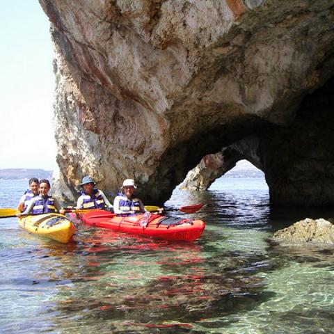 The sea kayak offers you the opportunity to admire the Kefalonia’s natural coastal environment, as well as its distinctive contrasts: Cypress and pine trees that reach the sea, impressive calcareous cliffs, exquisite underwater rock formations, exceptional geological phenomena, beautiful and secluded beaches, either with sand or pebbles, crystal clear waters and in the distance, quaint fishing villages and traditional settlements.